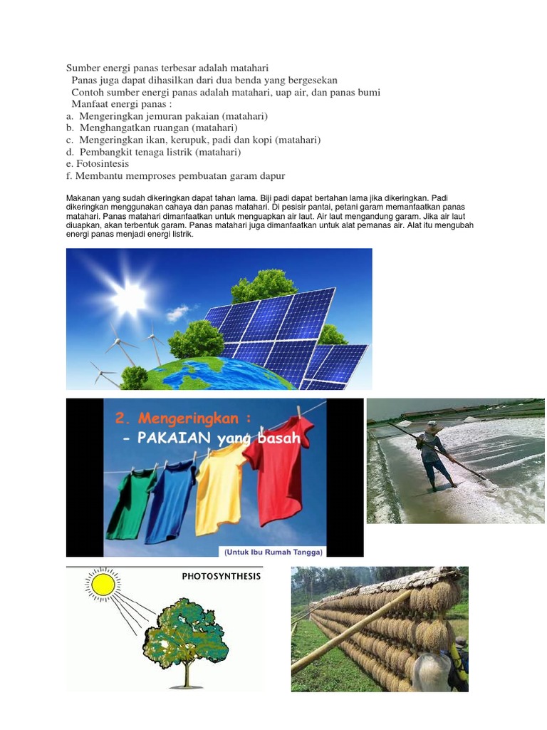 Harus diberi makan untuk hidup b. Matahari menjadi energi angin e. Namun, ini banyak dikritik karena harga pasang panel surya yang mahal dan tidak efisien.